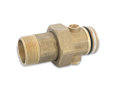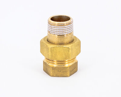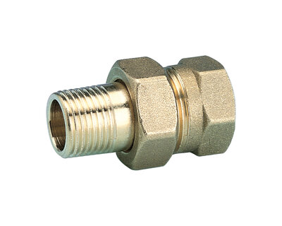 Complete water meter connection union. In non dezincifiable brass with short nut