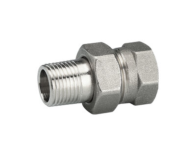 Three pieces straight union fitting, nickel plated. Metallic seal.