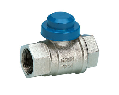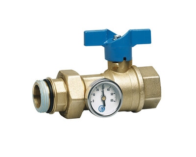 Fullway ball valve with built-in filter (type FM 28), inspectable. With predisposition for thermometer (art. T40/60 not included). Blue butterfly…