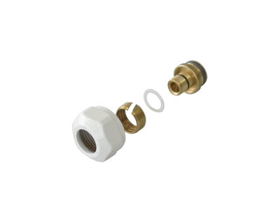 Complete adapting set made of brass for multilayer pipe. For Decor series. White.