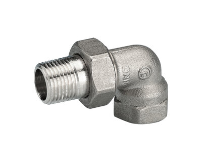 Three pieces elbow radiator union. Metallic seal. Nickel plated.