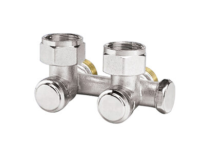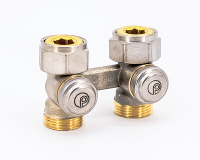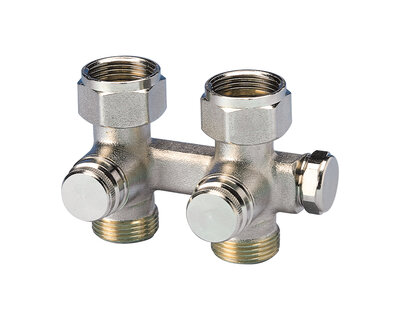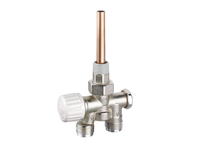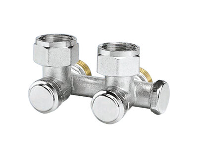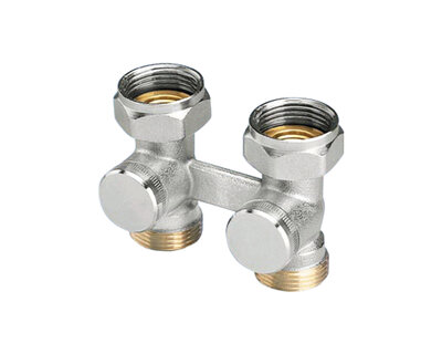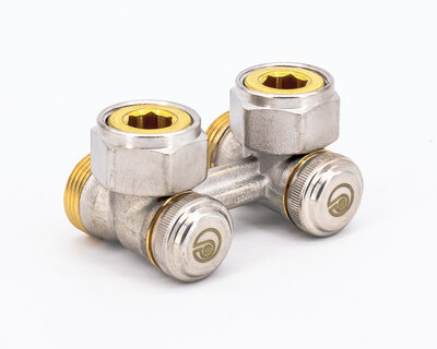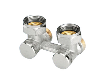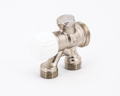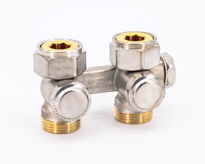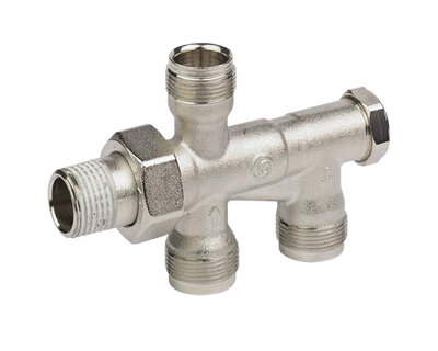 Four way radiator valve, for singledouble pipe heating plants. Compression fittings on three ends. Nickel plated. Without fittings (Art. 3015 -…