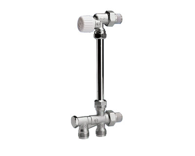 Complete external radiator connection: thermostatic inverse angle micrometric radiator valve with thermostatic option with compression end and 4 way…