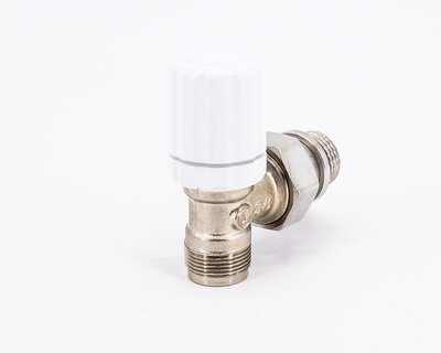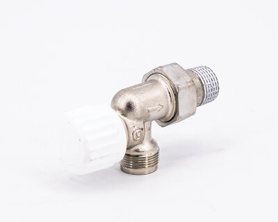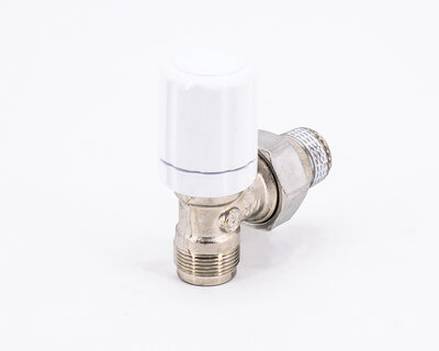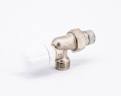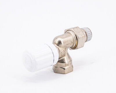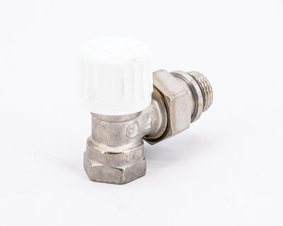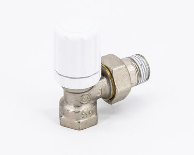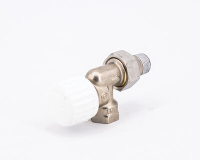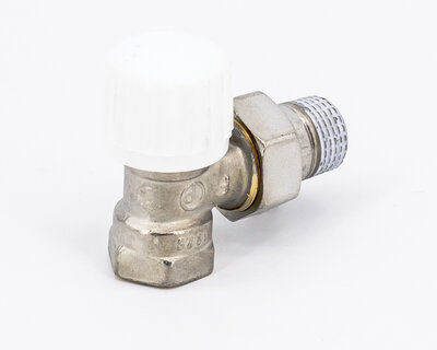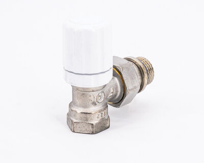 Angle radiator valve, with thermostatic option or thermo-electric control. Female thread. Nickel plated. The valve is not certified to EN 215.