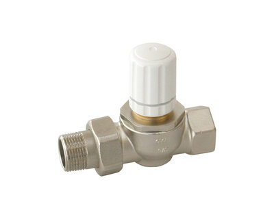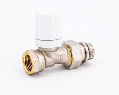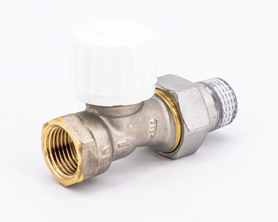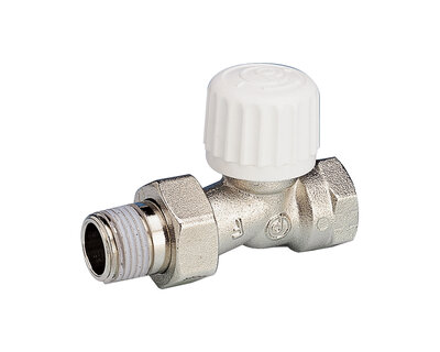Straight single regulating and manual operating radiator valve. Female thread. Nickel plated.