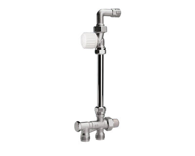 Complete external radiator connection: straight micrometric radiator valve with thermostatic option; with compression end; brass elbow and 4 way…