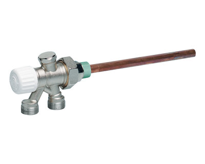 Complete external radiator connection: thermostatic inverse angle radiator valve with compression end and 4 way radiator valve 1/2" x 18. Pipe art.…