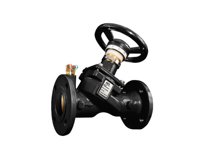 Static balancing valve with variable hole in cast iron and ISO connection flanges. Ideal for use in circuits of heating and cooling systems.