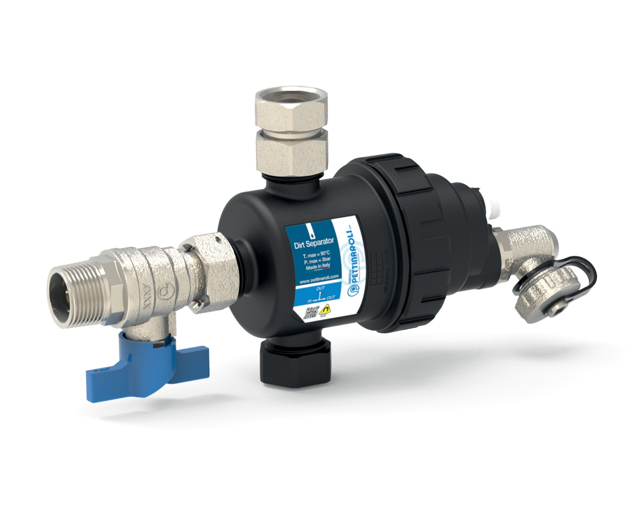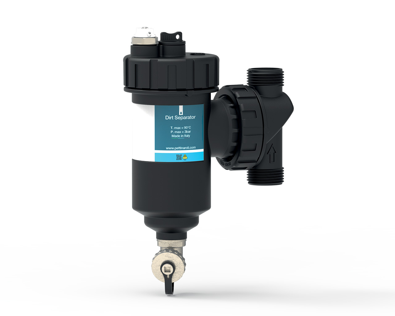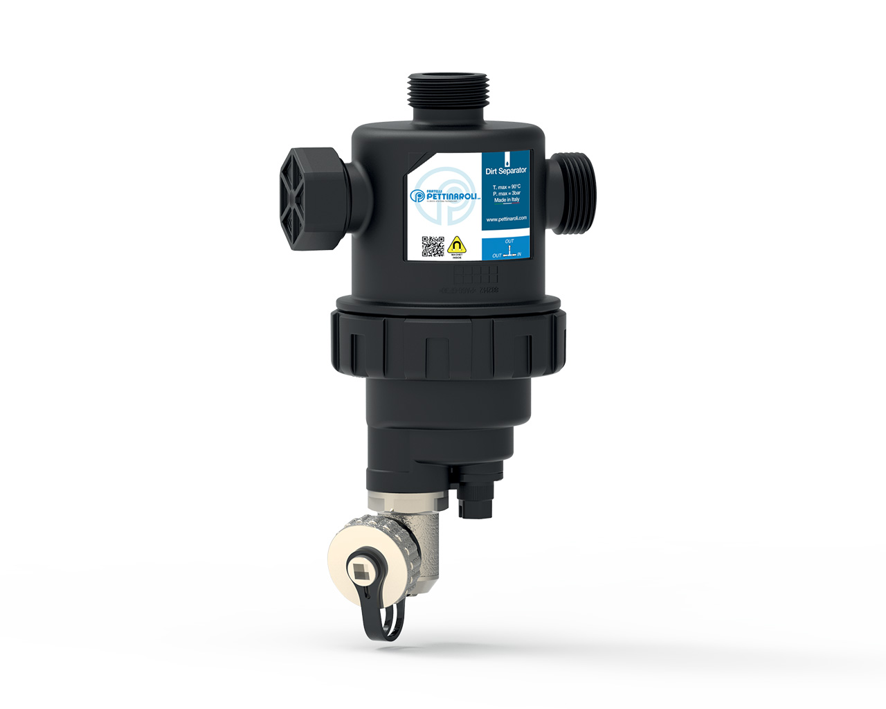 EvoMAGic magnetic dirt separator filter with 360° rotating fitting.