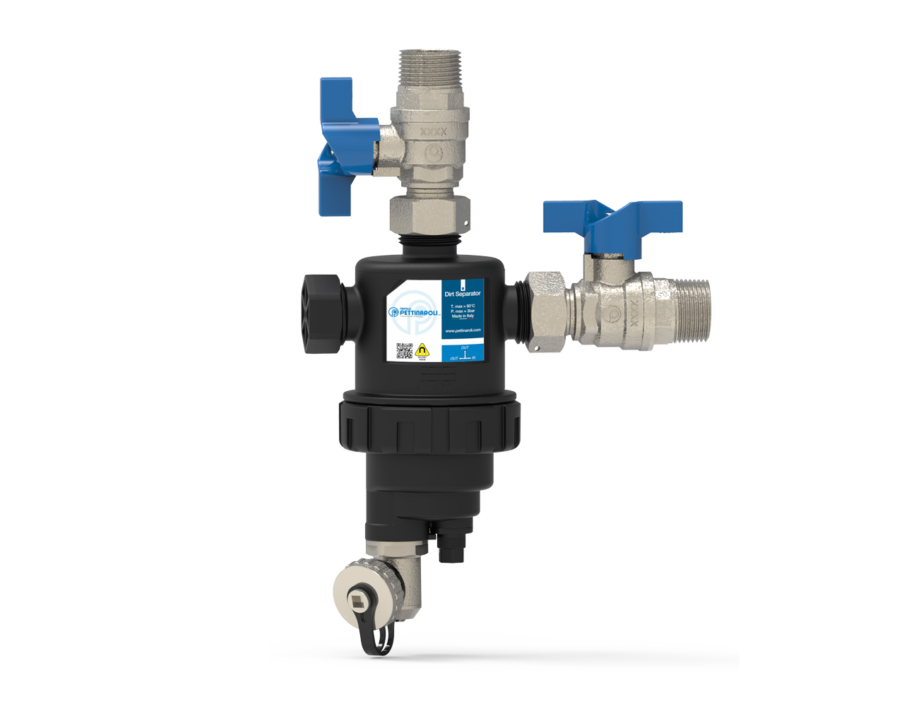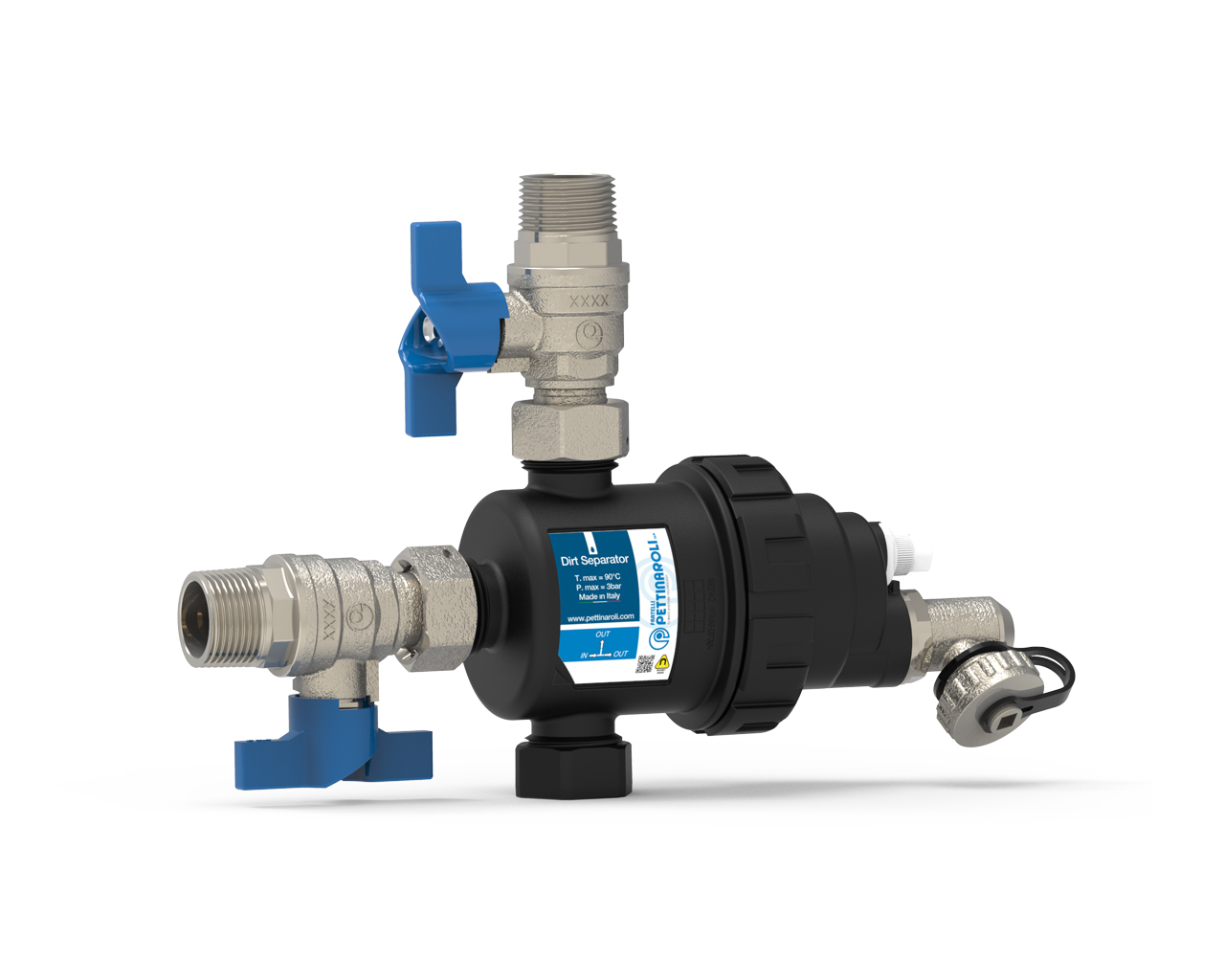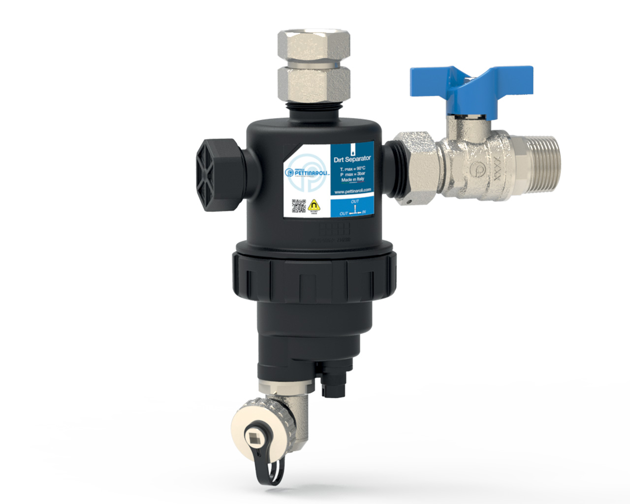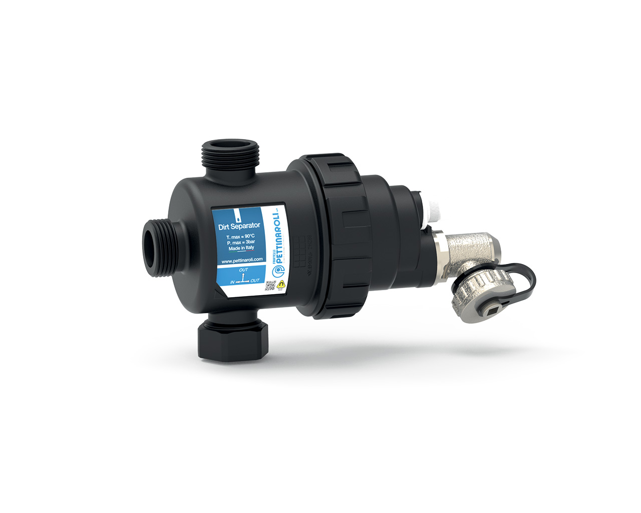 EvoMAGic magnetic dirt separator filter with 360° rotating fitting.
